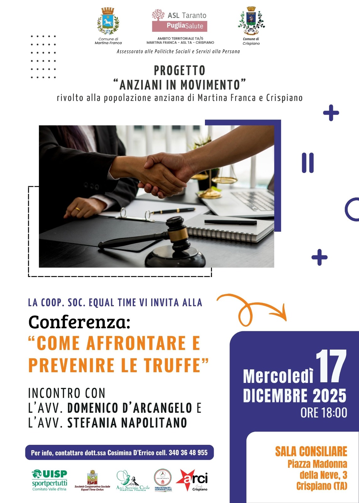 “Come affrontare e prevenire le truffe” questo è il titolo dell’iniziativa, che si concentrerà su una tematica purtroppo sempre più attuale e impattante, in particolar modo nei confronti della popolazione anziana.